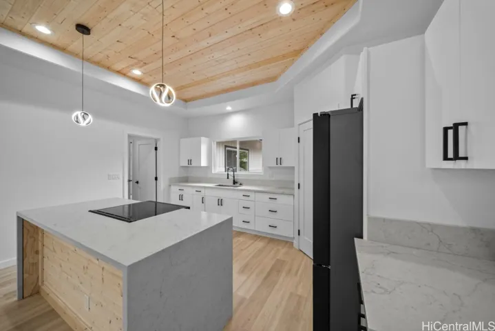 Welcome to this brand-new custom-built 3-bedroom, 2-bath home located in desirable Hawaiian Paradise Park. Offering 1,664 sq ft of interior living space, this thoughtfully designed residence features an open-concept floor plan with 9-foot ceilings and wood-paneled pine ceilings, creating a bright, spacious, and inviting atmosphere throughout the main living areas. The home includes an attached garage and is designed to maximize natural light and refreshing island breezes. Enjoy seamless indoor-outdoor living on the expansive 703 sq ft covered lanai, ideal for relaxing or entertaining year-round. Situated on a full 1-acre lot, the property offers privacy, lush surroundings, and ample space for gardening, recreation, or future expansion. Conveniently located near shopping, dining, schools, and the East Hawaii coastline, this new custom construction delivers comfort, space, and modern island living.